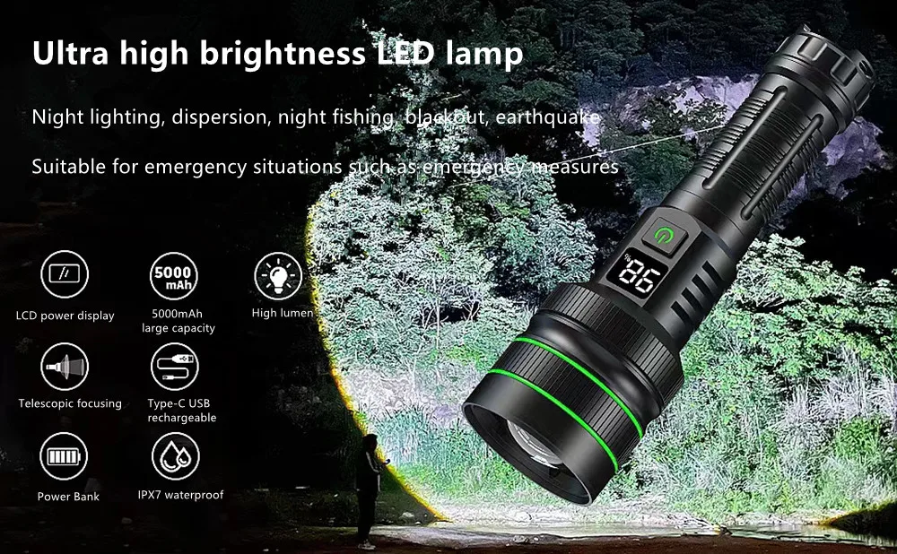 KENSUN Long-Range USB-C Tactical LED Flashlight