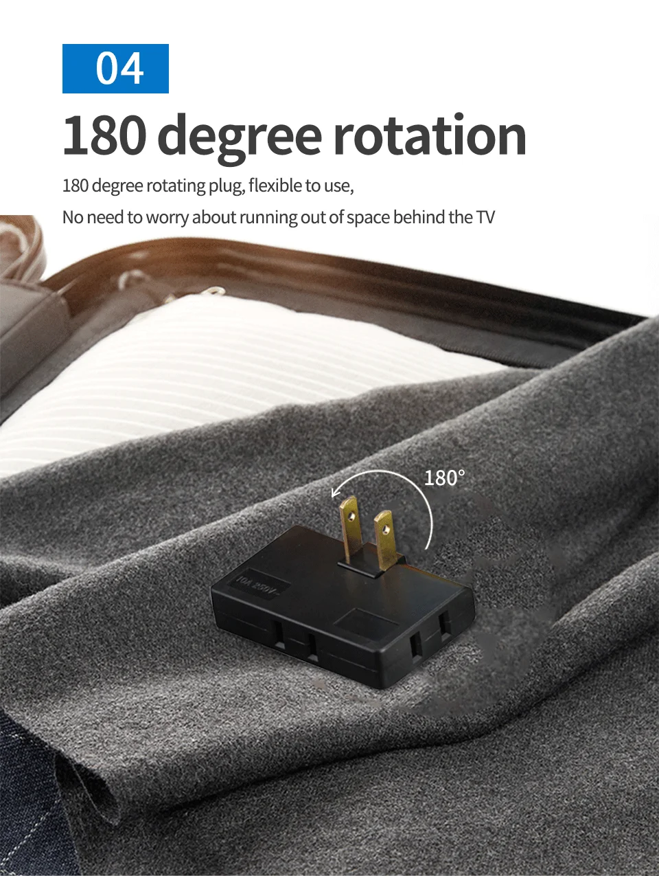 - Rotates 180° so you can plug in devices without blocking other outlets.