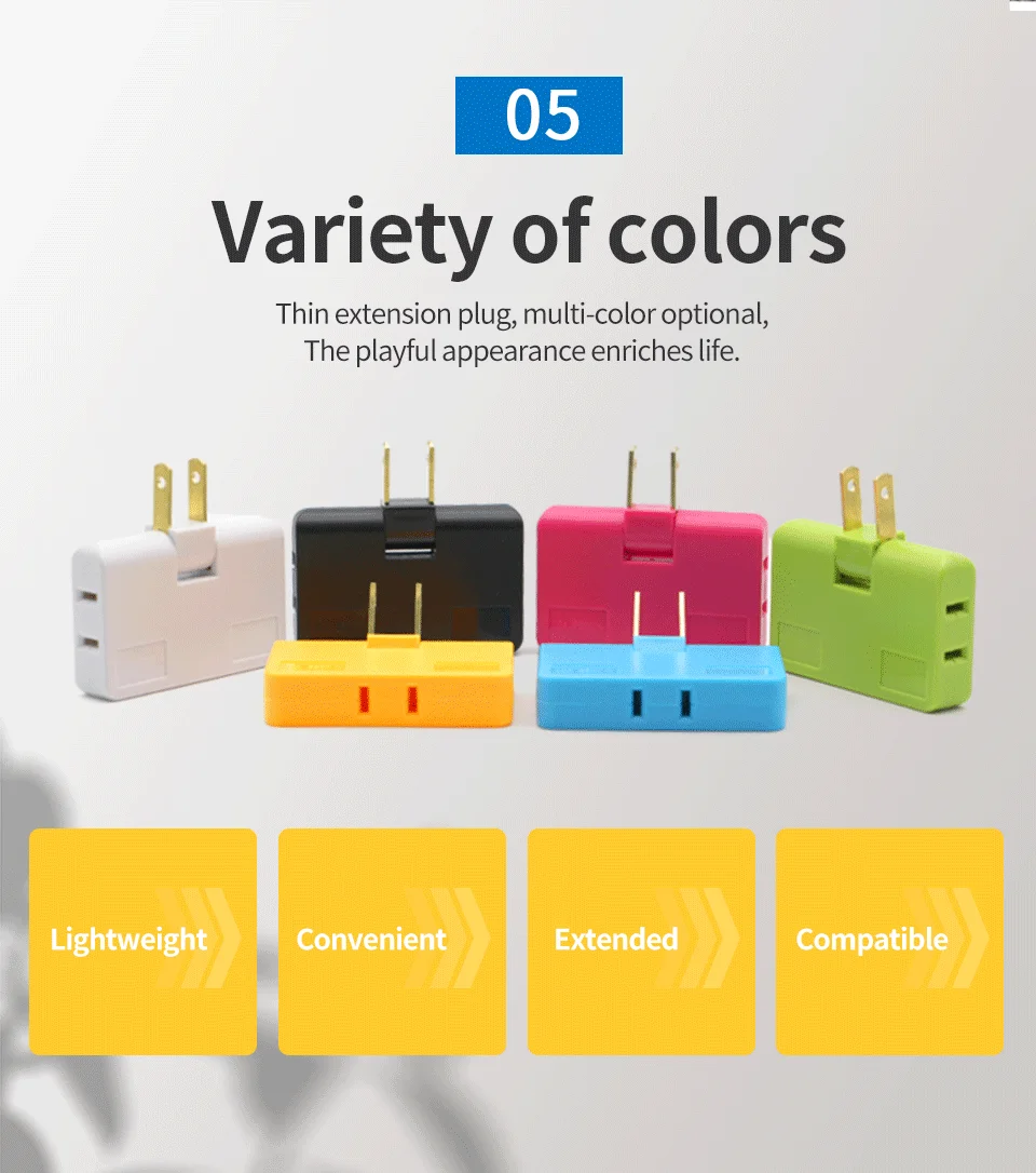 Say goodbye to limited outlets with this US 3-in-1 Rotatable Extension Plug Adapter! Its clever 180° rotation design makes it perfect for tight spaces at home, office, or even while traveling. Tiny but mighty, this mini and lightweight adapter fits right into your bag and provides three outlets for charging phones, laptops, and other essential gadgets at the same time. Built with high-quality phosphor bronze, it’s both safe and durable. Plus, with six bright colors to choose from, it adds a touch of style to your space while keeping your devices powered up, anytime, anywhere.