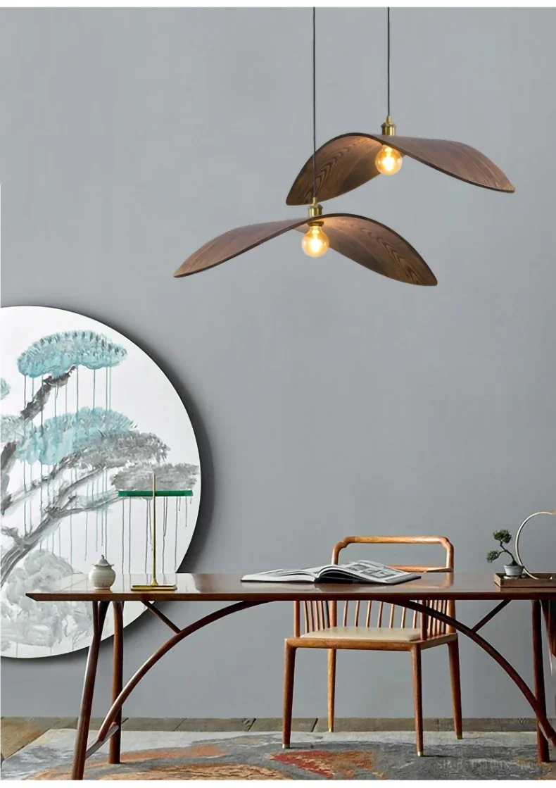 | Product Name | Walnut Wood Straw Hat Pendant Light |